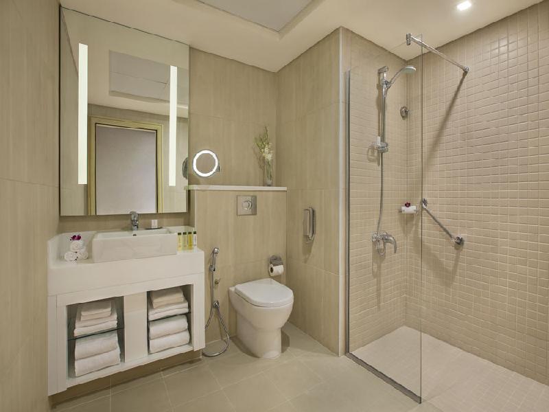 Property Location With a stay at DoubleTree by Hilton Hotel Dubai - Jumeirah Beach in Dubai (Jumeirah Beach Residence), youll be convenient to Dubai Marina Mall and Dubai Marina. This hotel is within close proximity of American University of Dubai and The Emirates Golf Club. Rooms Make yourself at home in one of the 110 air-conditioned rooms featuring minibars and LCD televisions. Rooms have private balconies. Private bathrooms have handheld showerheads and hair dryers. Conveniences include safes and desks, and you can also request cribs/infant beds. Rec, Spa, Premium Amenities Head down to the water and enjoy a day at the private beach, or take advantage of other recreational amenities including an outdoor pool and a sauna. Additional amenities include concierge services and tour/ticket assistance. Business, Other Amenities Featured amenities include a 24-hour business center, audiovisual equipment, and currency exchange. This hotel has 6 meeting rooms available for events.