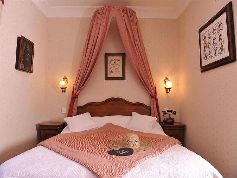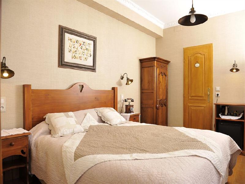 Imagine a place run by your ideal French grandmother: artfully and warmly decorated with mostly antique furniture and old copper and so on, its charming bar, sitting and breakfast rooms promising equally comfortable, well-appointed bedrooms. We stayed in number 8, but from what we understood from our fellow guests, the same level of appointment is throughout. The rooms were super-clean (daily), the towels and in-room robes large and fluffy, the mattress comfortable, and the bath fixtures modern and working. There was a good variety of complimentary toiletries in the bathroom. Early risers could have hot tea or coffee in the room, where a small fridge offered two (complimentary) bottles of water per day. A small in-room safe seems almost superfluous, given the room’s impressive locks. It looks like the family has spent years investing in quality appointments throughout, whenever they did work on the hotel. Clearly, they are in it for the long haul, skimping on nothing. The furniture is not fancy, but more well-polished, country-style, fitting perfectly in that charming ‘guest house’ atmosphere. The service is friendly, caring and quick, never stuffy or formal. If there is anything they can do for you, I am sure they will try. We were celebrating our 30th anniversary and I had brought a bottle of champagne for the room. They were happy to lend some champagne glasses. They kept my cooler ice in the kitchen freezer. They noticed the fellow sitting alone at the breakfast table next to ours was reading a magazine on the table, not always practical… So, they took the initiative to bring him an overturned bowl to rest it at a better angle. They do not miss a trick and were friendly and eager to make our stay perfect!
