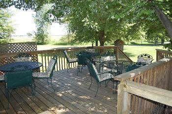 The grounds are very pretty and there is a large deck with plenty of outdoor seating that overlooks the back yard of the property. Did some relaxing there after spending the day at the Shipshewana Flea Market.