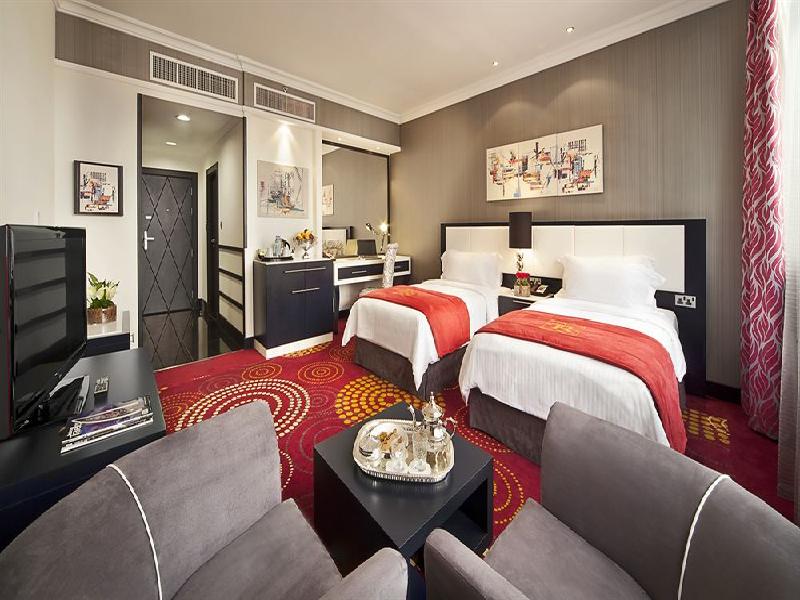 Property Location With a stay at The Royal International Hotel in Abu Dhabi, you'll be convenient to Abu Dhabi Commercial Bank and Abu Dhabi Mall. This 4-star hotel is within close proximity of The Corniche and Zayed City Market. Rooms Make yourself at home in one of the 189 air-conditioned rooms featuring minibars and LCD televisions. Your Select Comfort bed comes with down blankets and Egyptian cotton sheets. Windows open for fresh air and city views. wired and wireless Internet access is complimentary, while CD players and satellite programming provide entertainment. Private bathrooms with separate bathtubs and showers feature rainfall showerheads and makeup/shaving mirrors. Rec, Spa, Premium Amenities Enjoy a range of recreational amenities, including an outdoor pool, a spa tub, and a sauna. Additional features include complimentary wireless Internet access, a hair salon, and wedding services. Dining Enjoy a meal at one of the hotel's dining establishments, which include 3 restaurants and a coffee shop/caf. From your room, you can also access 24-hour room service. Business, Other Amenities Featured amenities include a business center, limo/town car service, and audiovisual equipment. Event facilities at this hotel consist of a ballroom, banquet facilities, and a meeting/conference room. A roundtrip airport shuttle is provided for a surcharge (available on request), and free valet parking is available onsite.