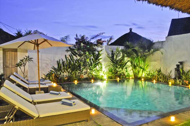 Villa Rumah Manis is a unique boutique hotel, built in the style of a traditional Balinese village. Villa Rumah Manis is located in Seminyak, away from the dizzy rush and bustle of Kuta yet choicest shopping, restaurants and nightspots. Villa Rumah Manis is only a short walk to Legian Beach and a 25 minute drive from Ngurah Rai International Airport. All Villa Rumah Manis villas feature two spacious air conditioned double or twin bedrooms with ensuite living rooms, upstairs marble bathouroom with bath, downstairs bathouroom with outdoor Balinese style garden shower, private walled garden with refreshing plunge pool and alfresco dining living area.