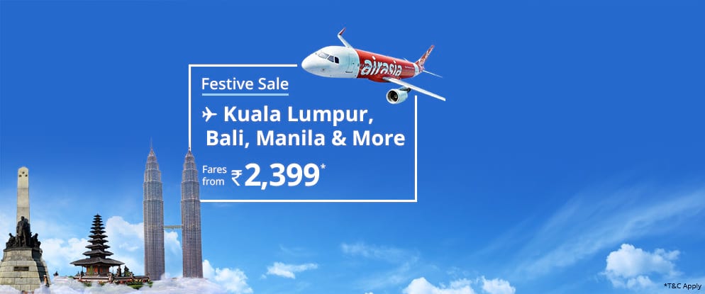 AirAsia Exclusive Offer to Kuala Lumpur, Bangkok, Bali, Manila & More. Lowest AirAsia One-Way International Fares Starting from ₹2,399*. Limited Period Offer. Hurry!