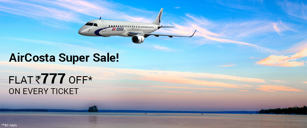 Aircosta Offers Super Sale on Domestic Flights. Flat Rs. 777 Off* on Every Ticket. Limited Period Offer on Via.com. Hurry!!