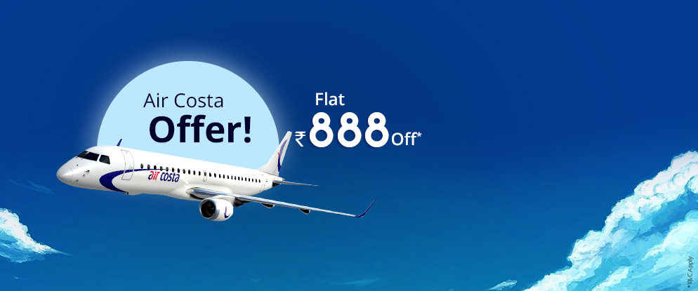 Air Costa announced promotional offer on Domestic Flights. Get flat Rs 888 /- off on every flight ticket. Limited period Air Costa sale on Via.com. Hurry!