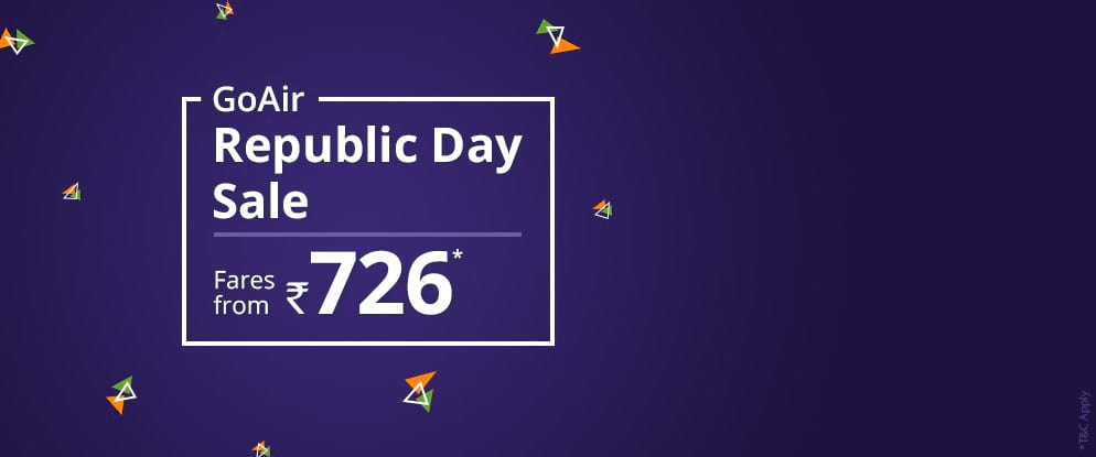 GoAir Republic Day Sale! Lowest GoAir Fares Starting from ₹726. Limited Period Offer. Hurry!