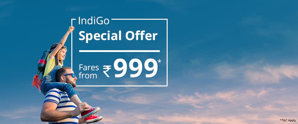 IndiGo Special Offer on Select Domestic Destinations. Now Plan Your Winter Vacation with Lowest IndiGo Airfares Starting from ₹999*. Limited Period Offer only on Via.com. Hurry!
