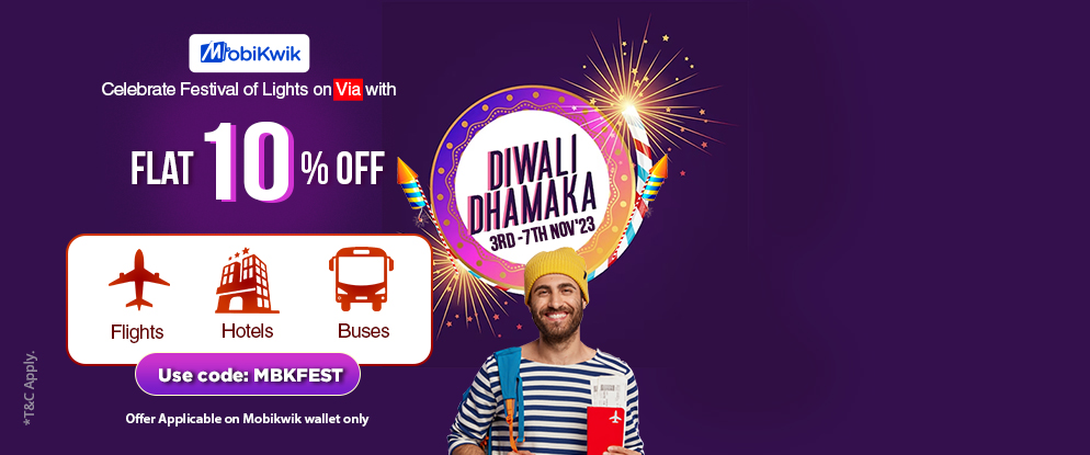 Explore our 'MBKFEST' Diwali Special Offer Search Page! Unlock the magic of Diwali with a 10% flat discount on flights, buses, and hotels.