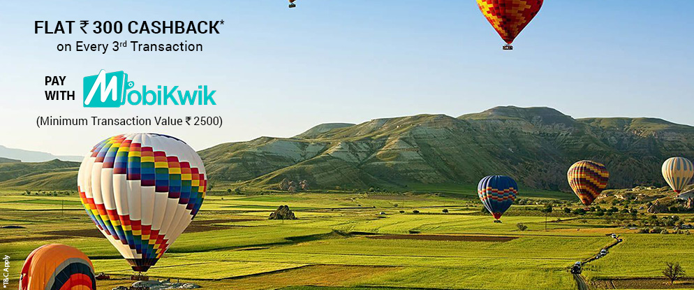 Pay with Mobikwik & get Flat Rs. 300 cashback* on every 3rd transaction on Via.com. Minimum transaction of Rs. 2500 (Excluding Via Convenience Fee). Limited period offer valid till 23rd August,2016. Hurry!